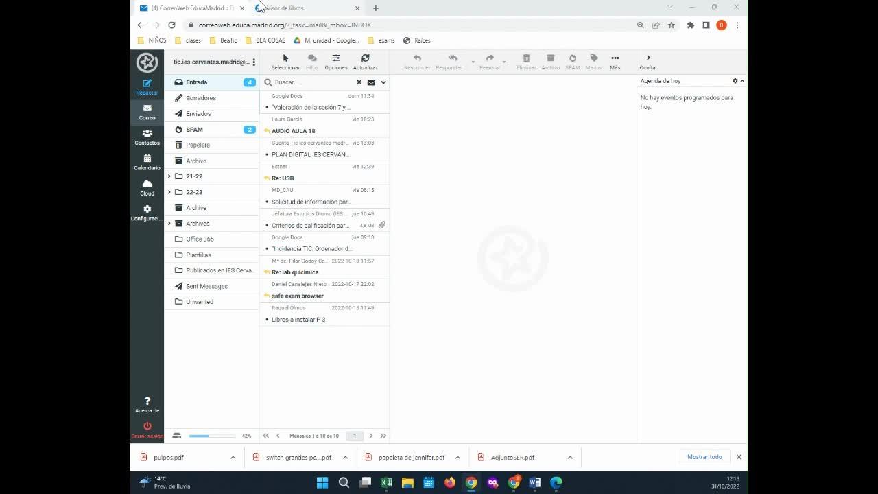 mis carpetas. Lo voy a poner aquí en 22-23 y le digo guardar. Cuando vaya aquí a correo