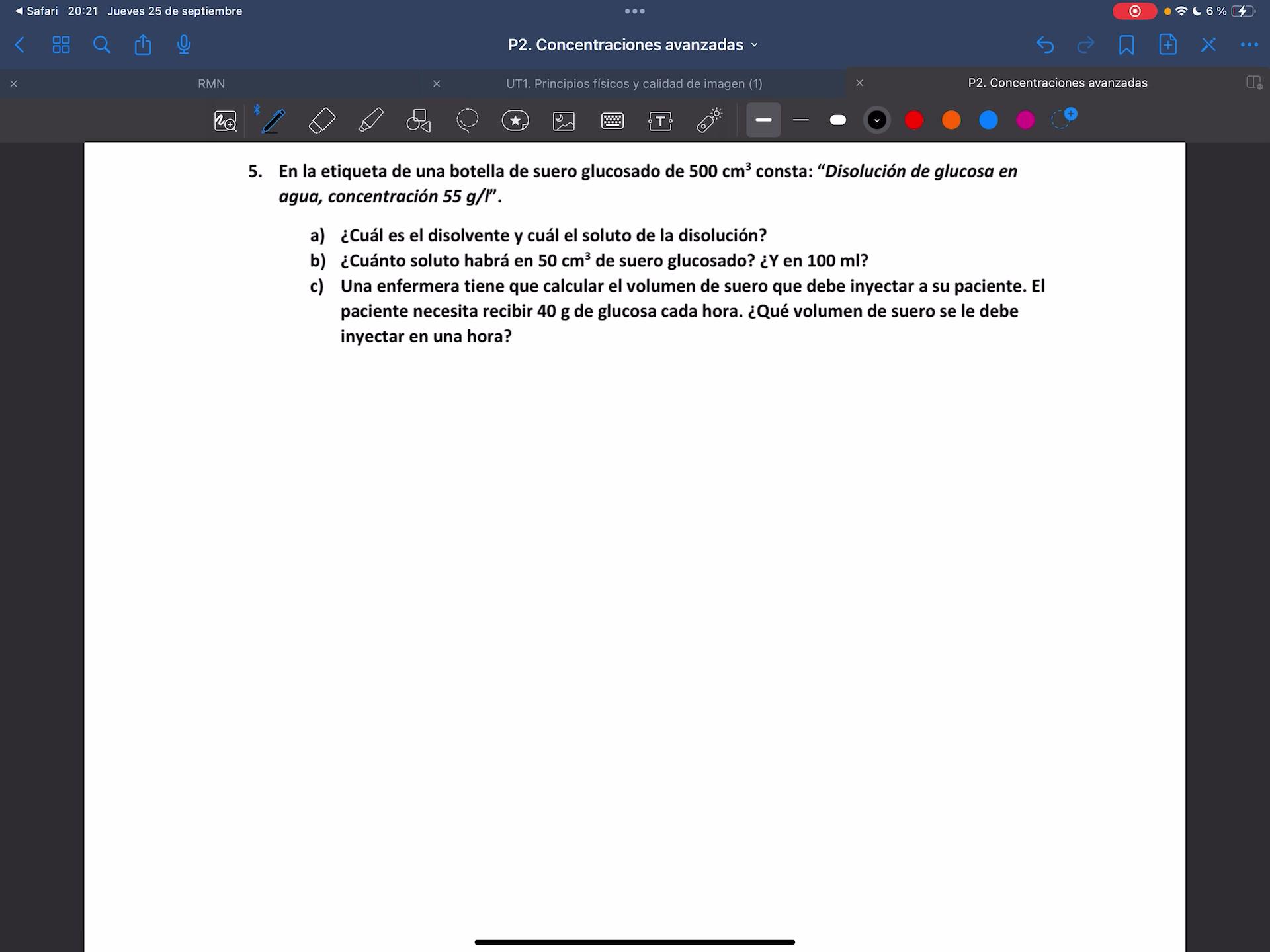 Necesita recibir esta cantidad de glucosa. Así que, ¿qué volumen de suero se le debe inyectar en una hora? Son estos gramos por hora, ¿vale? Pues, pues muy sencillo, ¿no?