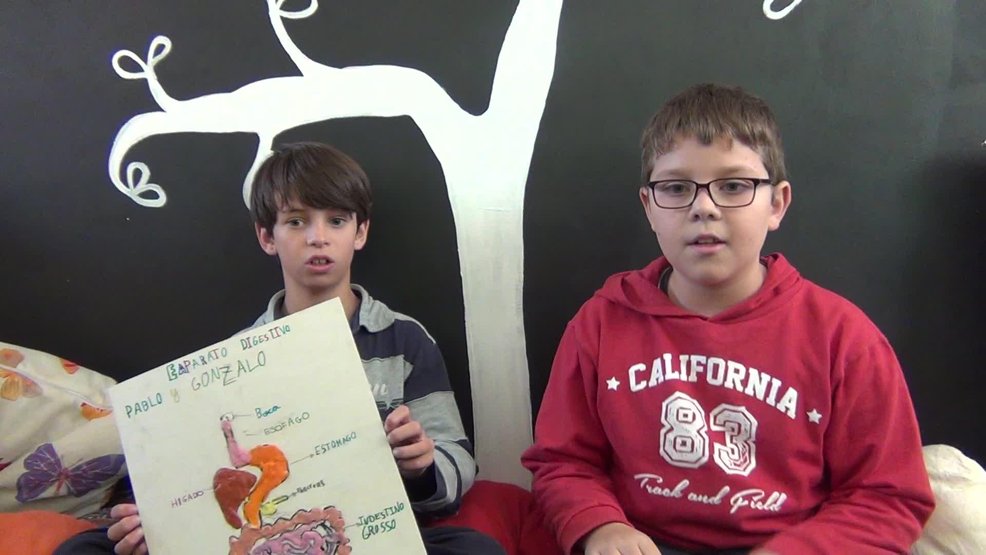 Hola, somos Gonzalo y Pablo y os vamos a enseñar el aparato digestivo y somos del Colegio Angel León, clase 4B.