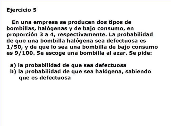 Bien, queda claro que, apartado A, la probabilidad de que sea defectuosa puede ser debido a que la bombilla que hemos sacado sea halógena, con lo cual tenemos, por la probabilidad condicionada, el producto de estas dos probabilidades.