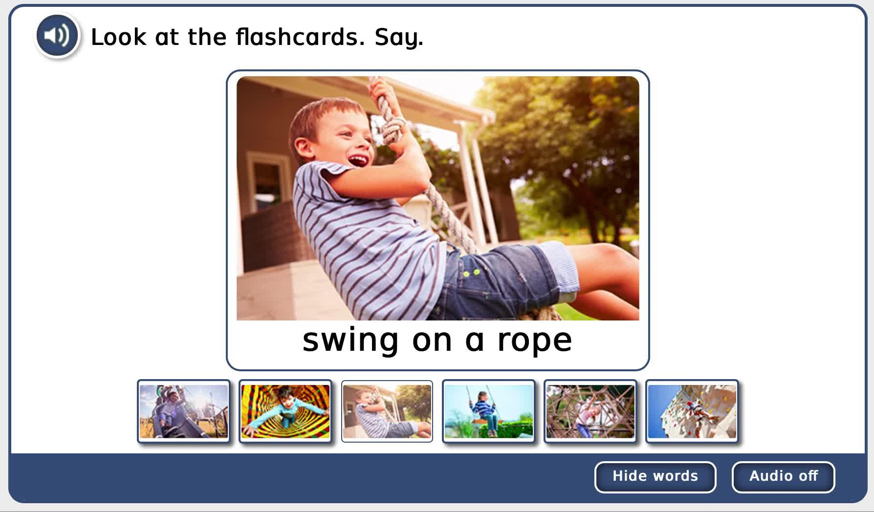 swing on a rope swing on a swing climb a climbing frame climb a climbing wall