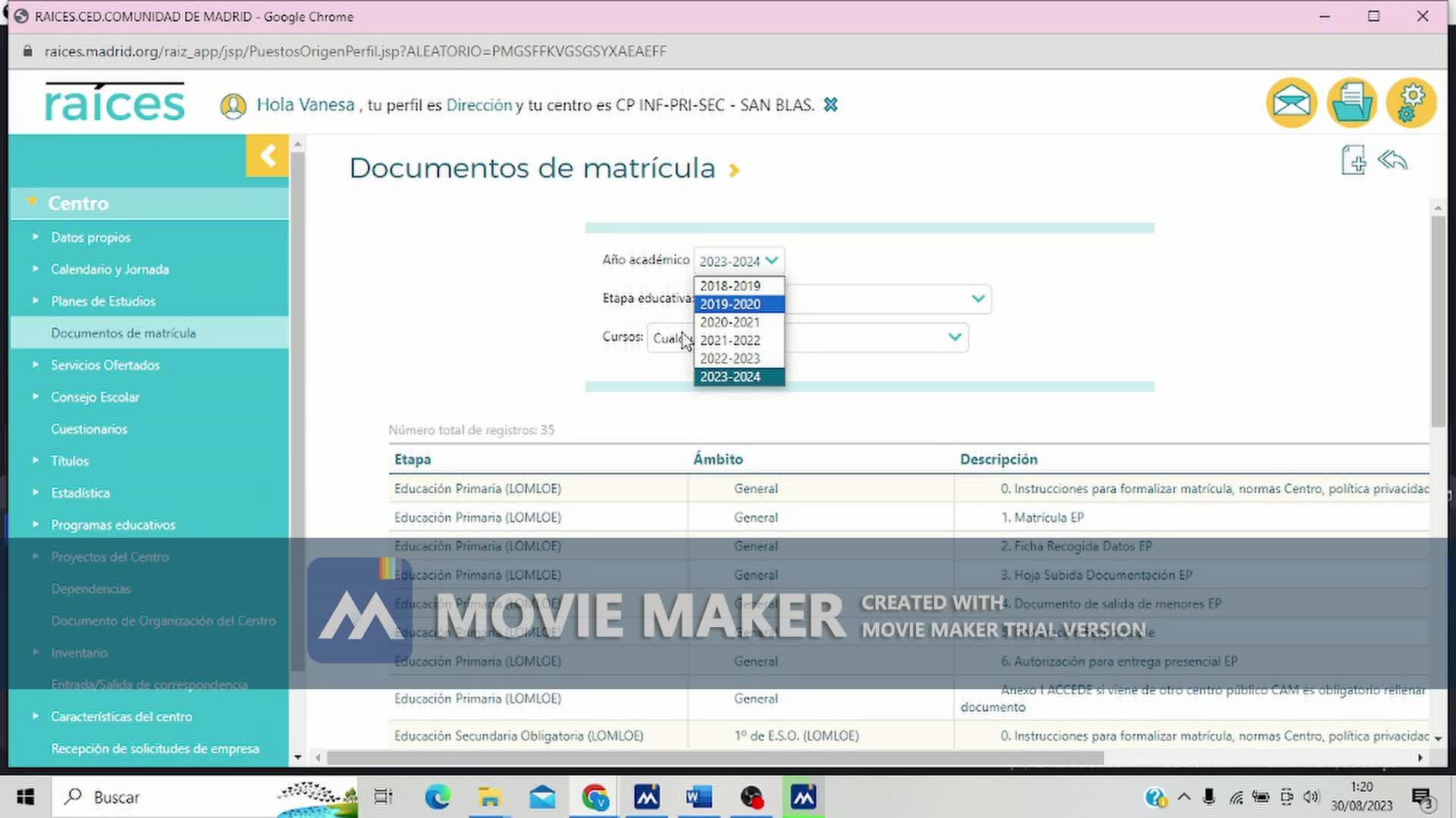 Bueno pues en raíces desde el perfil dirección en el apartado centro documentos