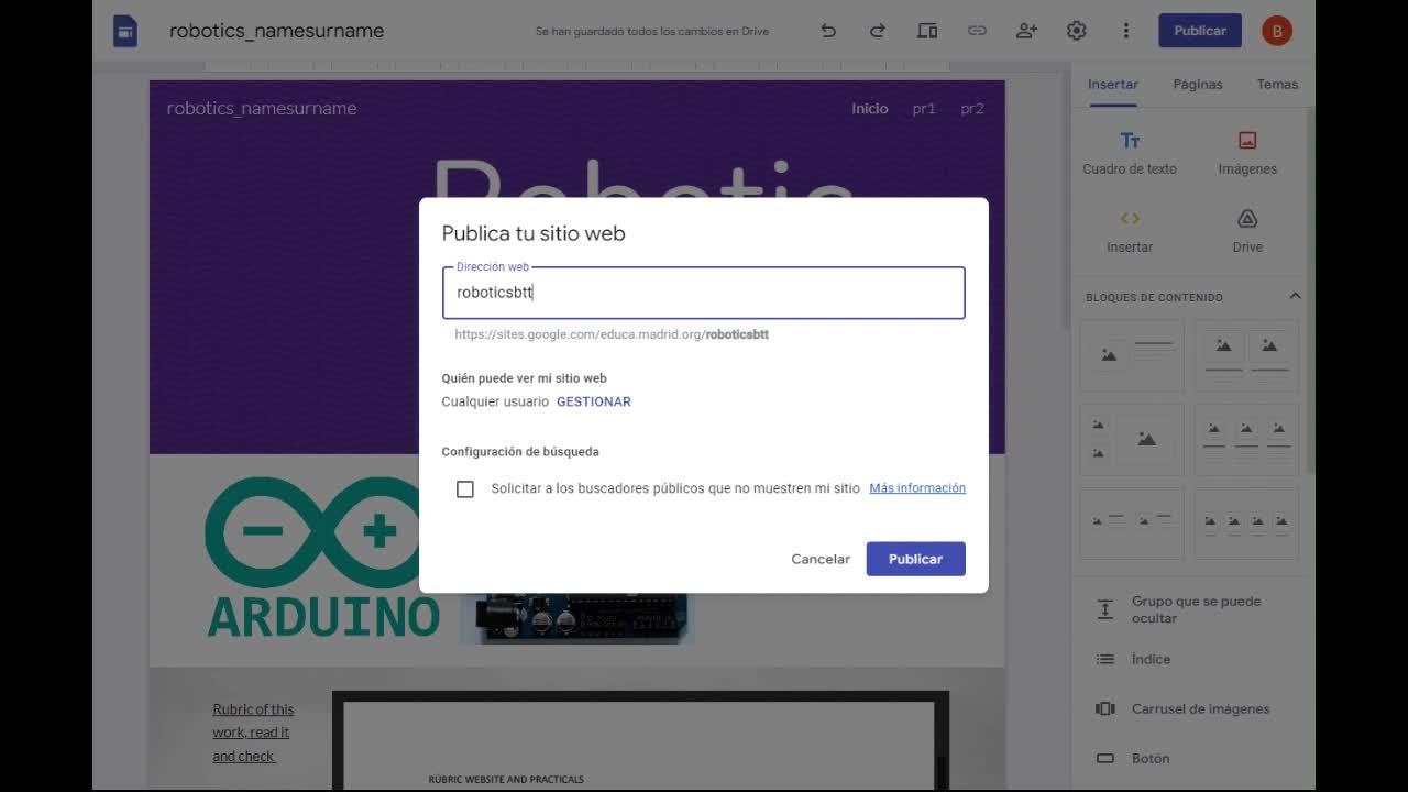 And here, sitio web publicado, website published, please make it public, done.