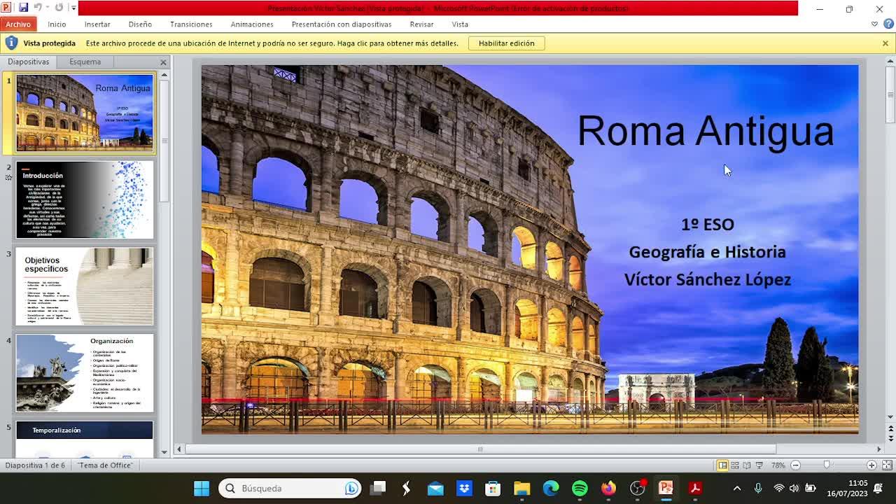 de aprendizaje de Roma Antiguo. Puedes observar que tenemos esta breve introducción en la