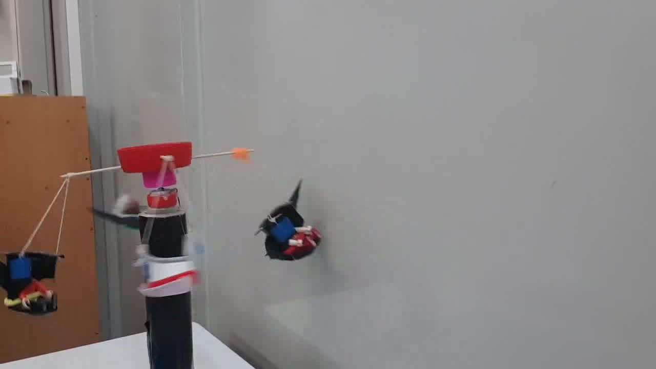 Aquí hemos construido una atracción de sillas voladoras que combina un motor que tenemos puesto ahí con la fuerza centrífuga