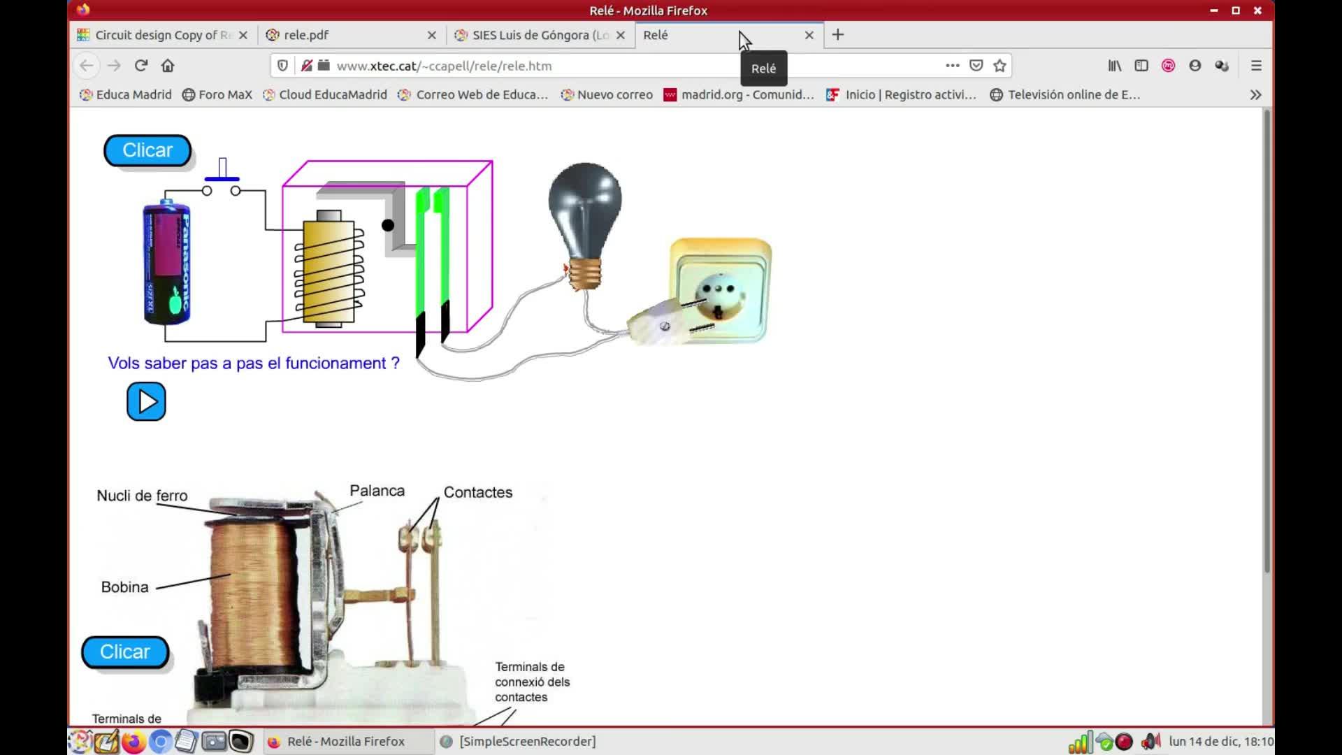 Mirad, aquí en la pantalla podéis ver un esquema de funcionamiento de un relé, aquí en la parte superior.