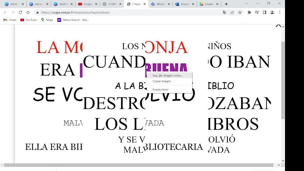 juego palabras entrelazadas scape room - Contenido educativo