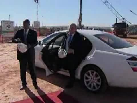 Joseph Blatter en inspecteur général des travaux... pour sa première visite sur les chantiers de la coupe du monde 2010, le président de la Fifa.