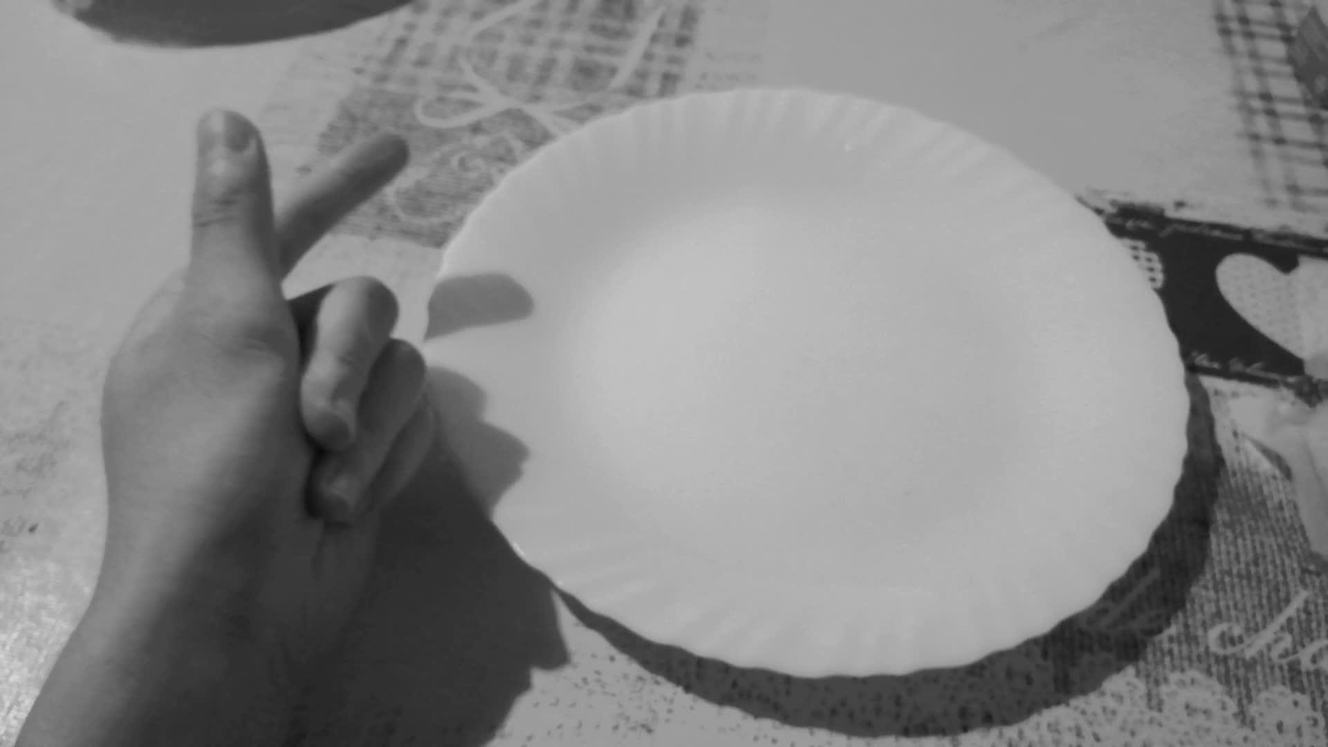 Une assiette, un verre, une bouchette, un couteau, un grand cuillère,