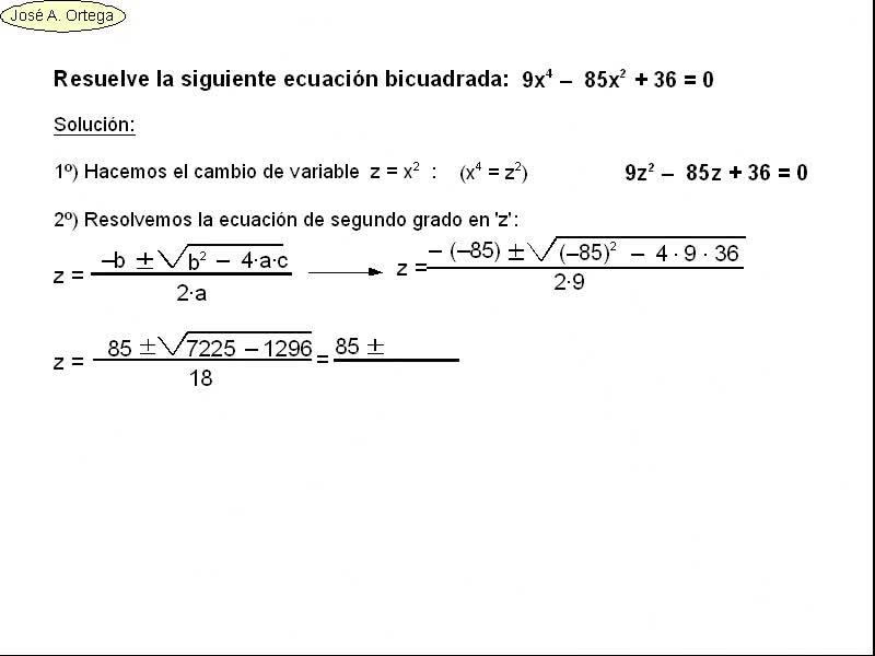 Resolvemos en esta ocasión la siguiente ecuación bicuadrada