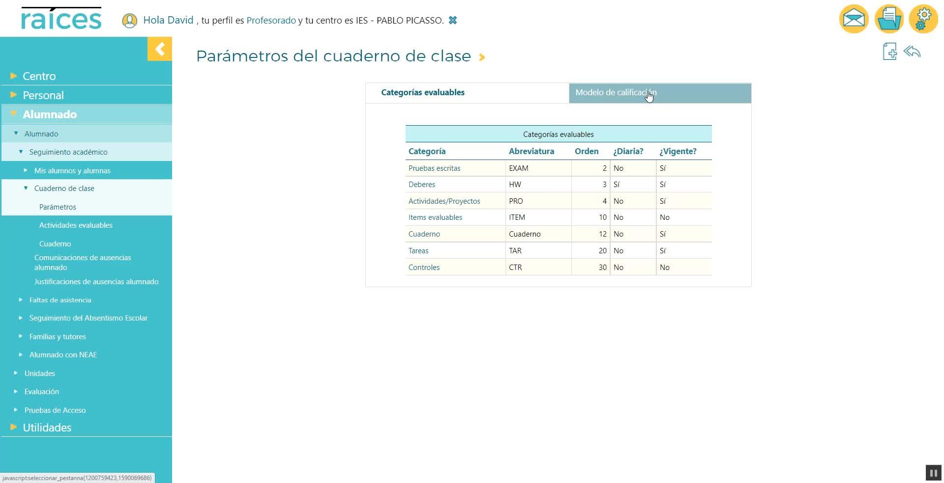9.Cuaderno del profesor (parte II). Definición del modelo de calificación (criterios de calificación) en Raíces
