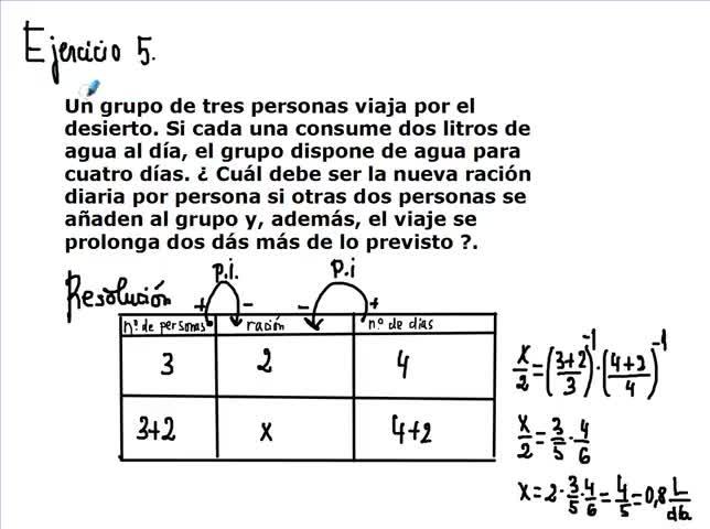 pues eso les... tenían agua para cuatro días. Pero cuando ahora se les añaden dos personas, entonces ya tenemos cinco personas.