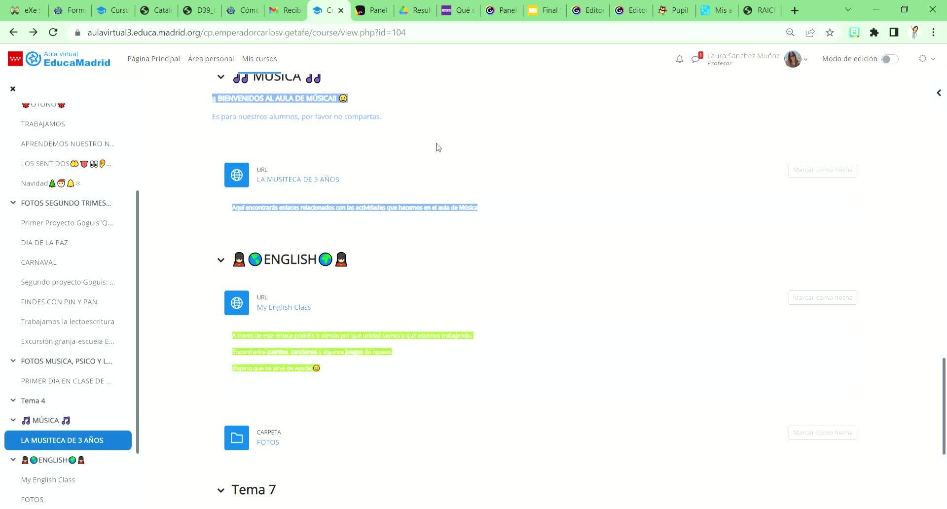Además, me gustaría comentar que en el aula virtual también he agregado otros bloques en infantil, en este caso son fotos, para que las puedan ver los padres con la privacidad y la protección de datos adecuada