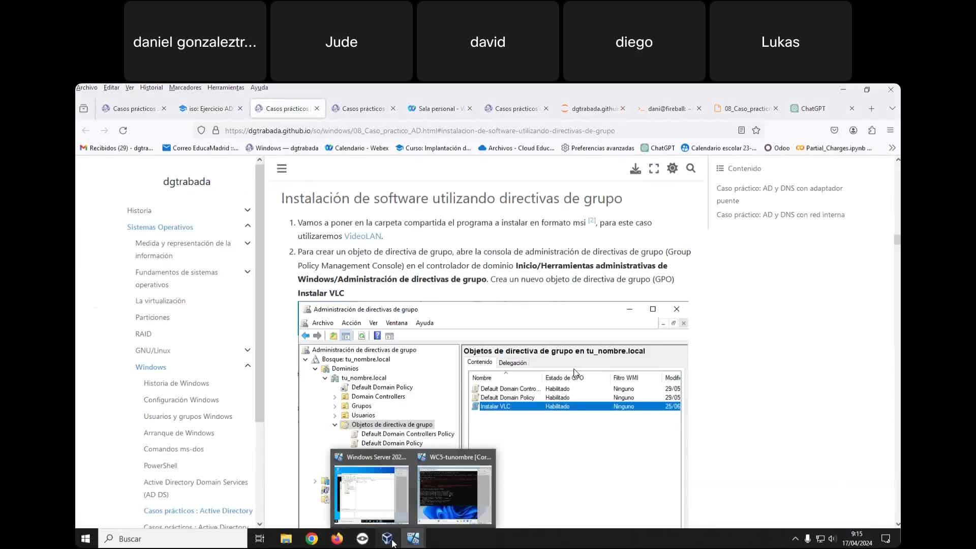 Instalación de software utilizando directivas de grupo y carpetas compartidas con WS22 y W11 - Contenido educativo