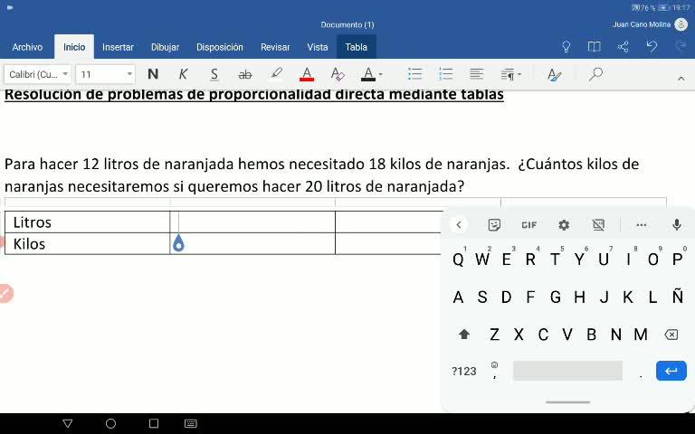 Vamos a resolver un problema de proporcionalidad directa mediante una tabla.