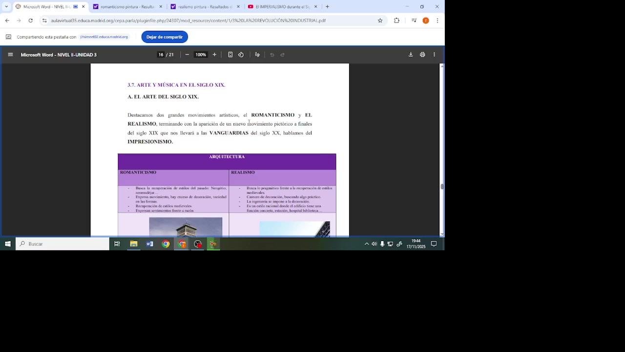 Buenas, ahora vamos a ver el apartado 3.7, Arte y Música en el siglo XIX, ya sería el