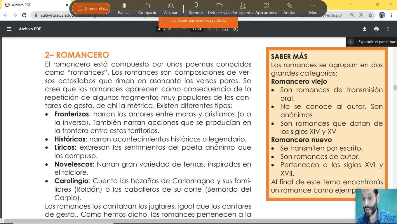 Bueno. Bien. Vamos a explicar el romancero. ¿Qué son los romances? Pero antes yo creo que lo que tengo que hacer es daros unas nociones de cómputo silábico y de lo que son los versos y cómo se miden los versos.