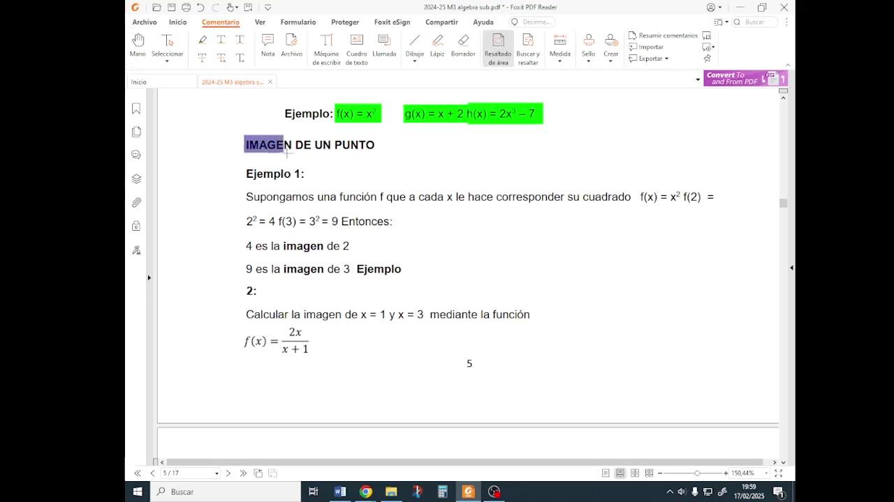 La imagen F de 3, en este caso, pues sería la imagen de 3, sería F de 3, o sea, 3 medios. Aquí viene explicado para que lo podáis repasar.