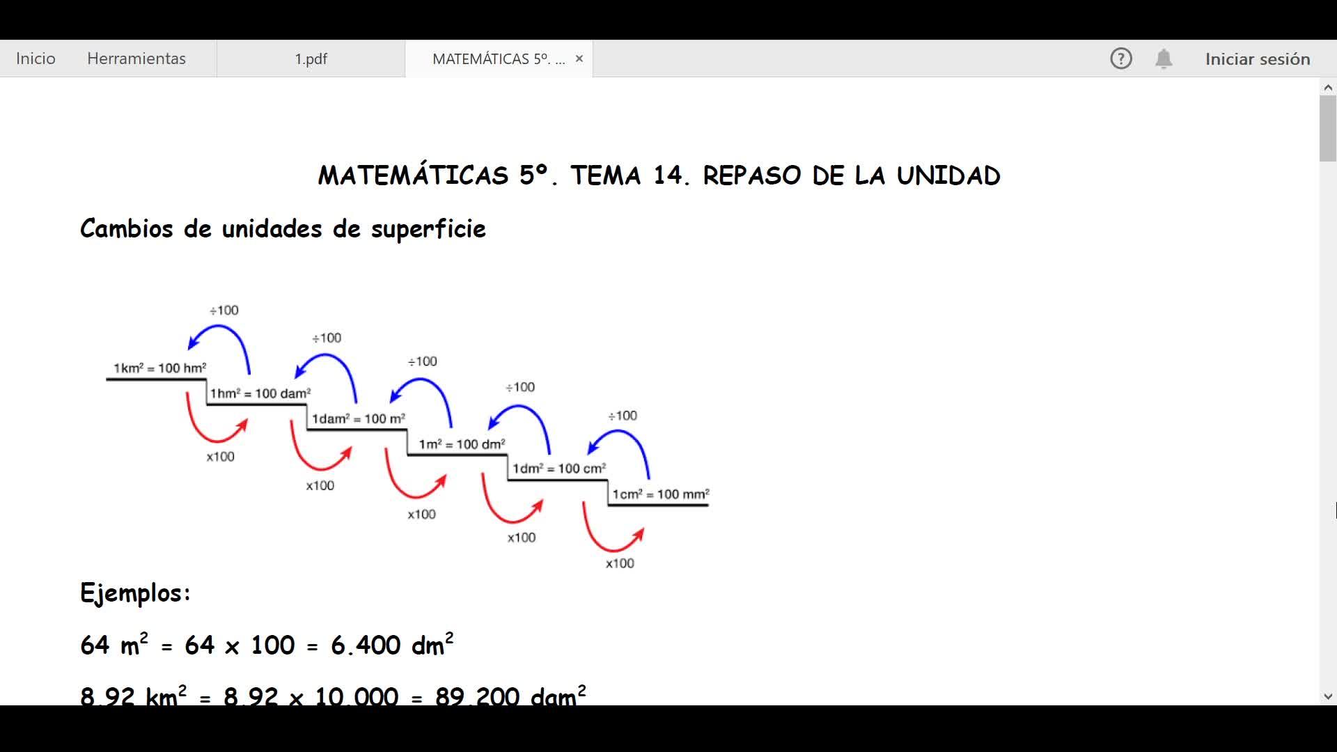 Así que esto lo primero de todo, los cambios de unidades de superficie lo vimos en el tema 10 sobre la medida de la superficie.