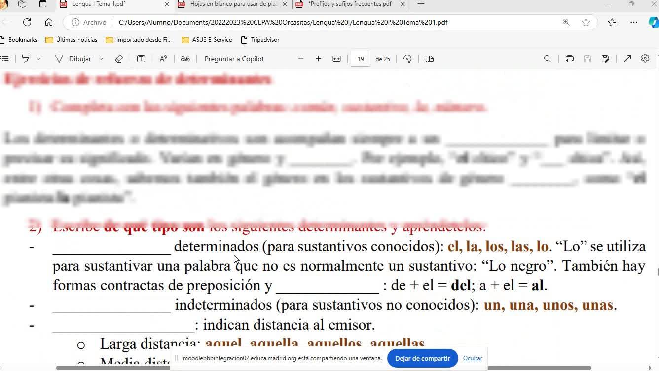 El adjetivo y vamos a hacer ejercicios de adjetivos y sustantivos y seguiremos con el tema 1 a ver si lo acabamos.