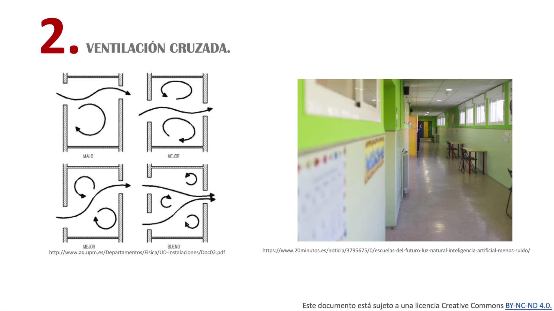 Bueno, cuando nos encontramos a lo mejor aulas enfrentadas, yo ahí sí que sería un poco precavida y si tenemos un pasillo por medio, que no he encontrado una imagen para poneros, lo siento, si encontramos un pasillo intermedio entre dos aulas que queremos ventilar, pues a lo mejor podemos alternarnos.