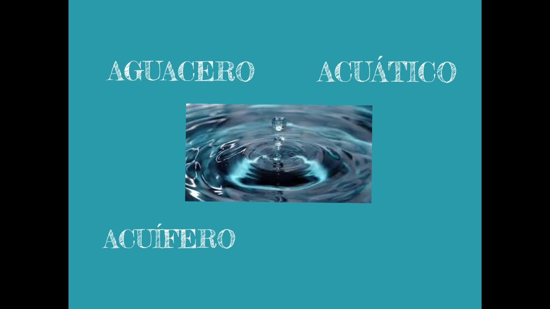 Aguacero, acuático, acuífero y desagüe son palabras derivadas de agua.