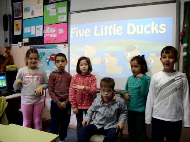 And only four little ducks come back, four little ducks go swimming one day, over the hills and far away.