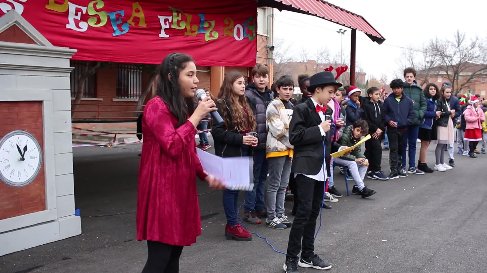 ... un poco todos de sitio. Le he pedido el micrófono aquí a Pablo Anchu. Bueno, daros las gracias a todos los que estamos aquí y toda la comunidad educativa. Esto sí que es comunidad educativa, los niños, los profes y, como no, vosotros, los padres.