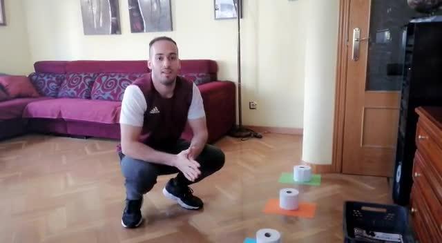 y lanzo los cuatro rollos hacia el cubo, si encestamos los cuatro hemos superado el reto.
