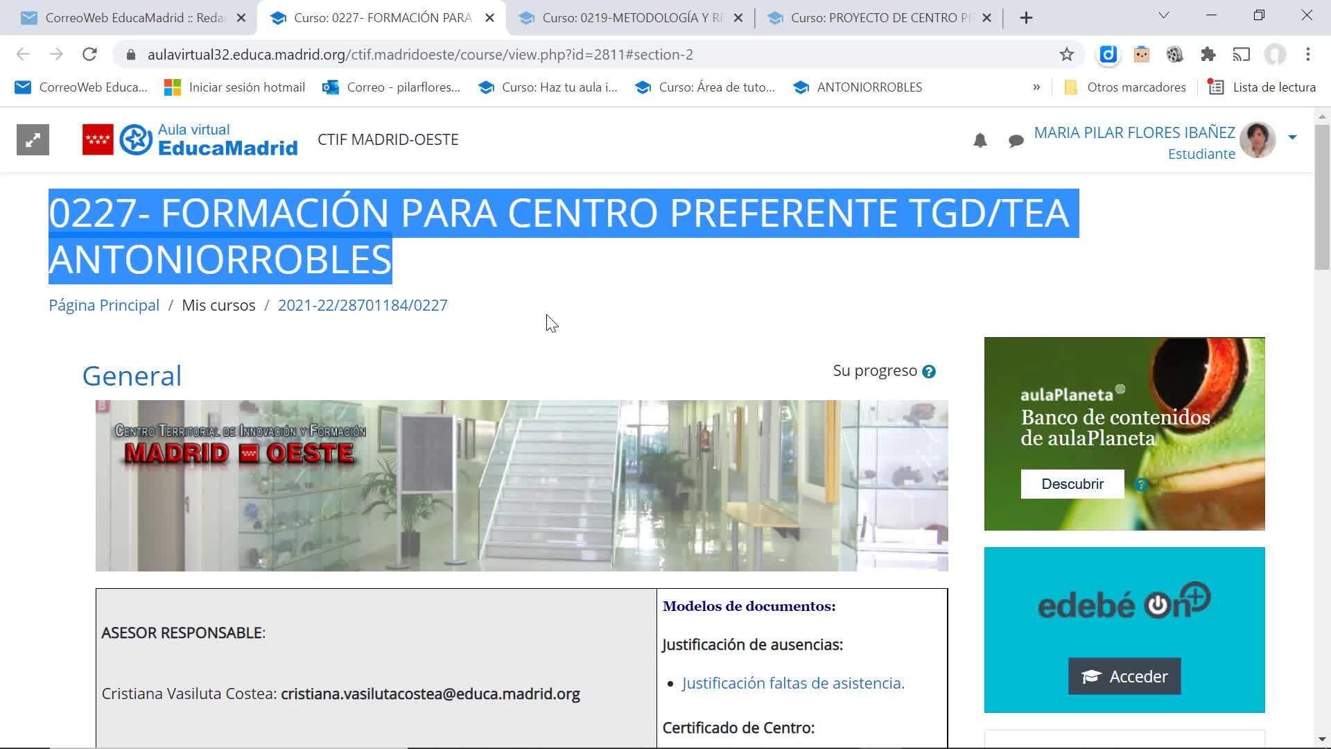 Hola compañeros, una vez que accedéis a través del enlace que os hemos enviado por correo electrónico al curso en el que estáis matriculados,