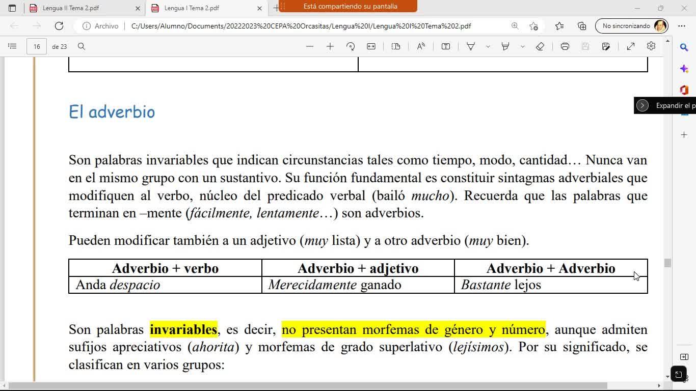 Bien, pues el adverbio es un tipo de palabra, habíamos visto los verbos y las perifrasis que os lo he grabado en otro vídeo