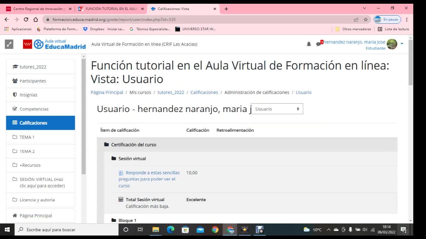 y ya está, se abren las tareas que hemos realizado, están aquí, y pone la calificación y la retroalimentación.