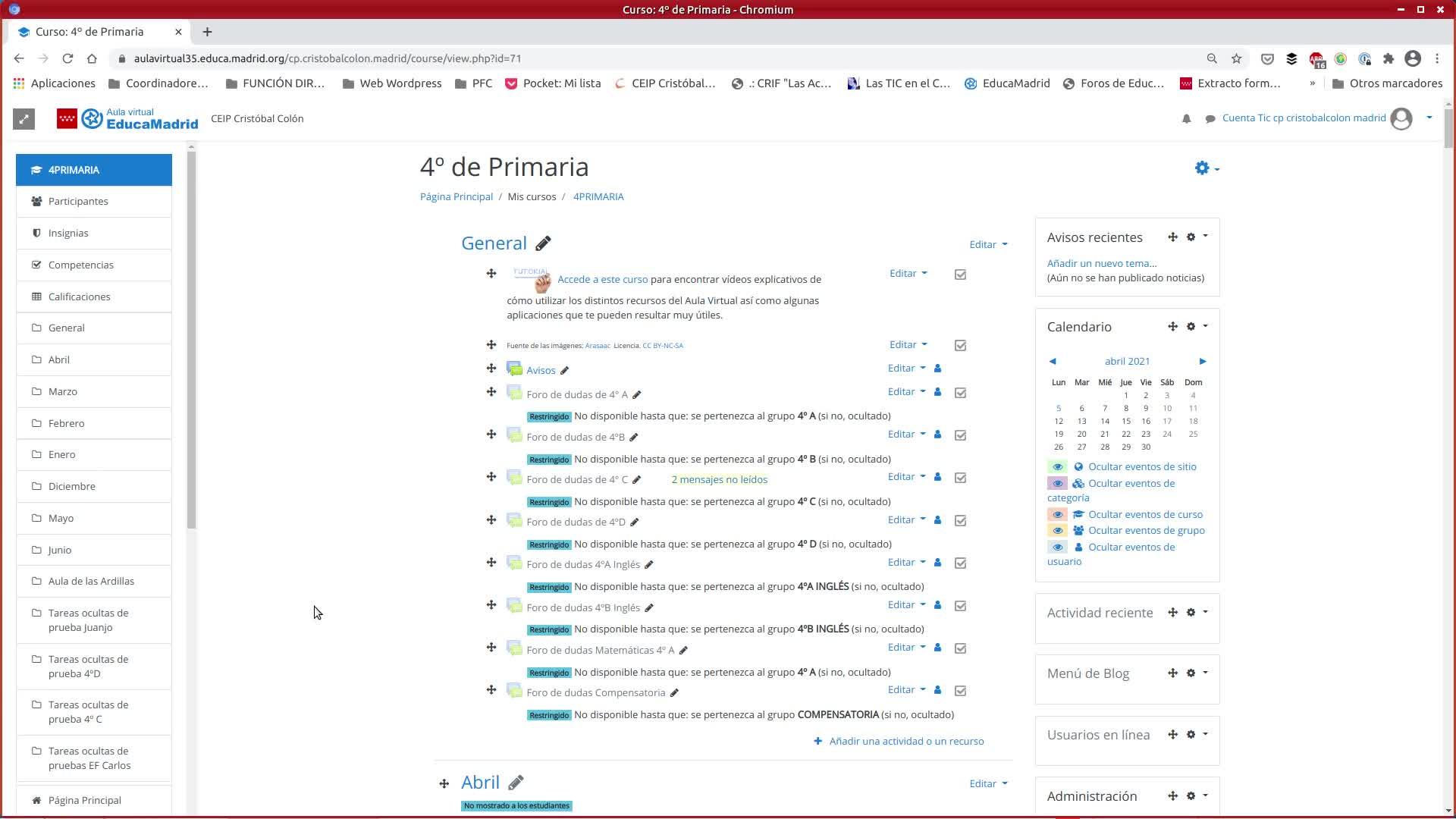 pero os explico que no lo hemos hecho en el principio porque este año ha sido, digamos, labor mía como DIC matricular a los grupos de usuarios