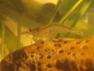 Los camarones de Amanu, Caridina multidentata, son unos crustáceos de agua dulce que tienen un cuerpo transparente con característicos puntos de color granate y una línea blanca amarillenta en el dorso que les recorre desde el rostro hasta el telso.