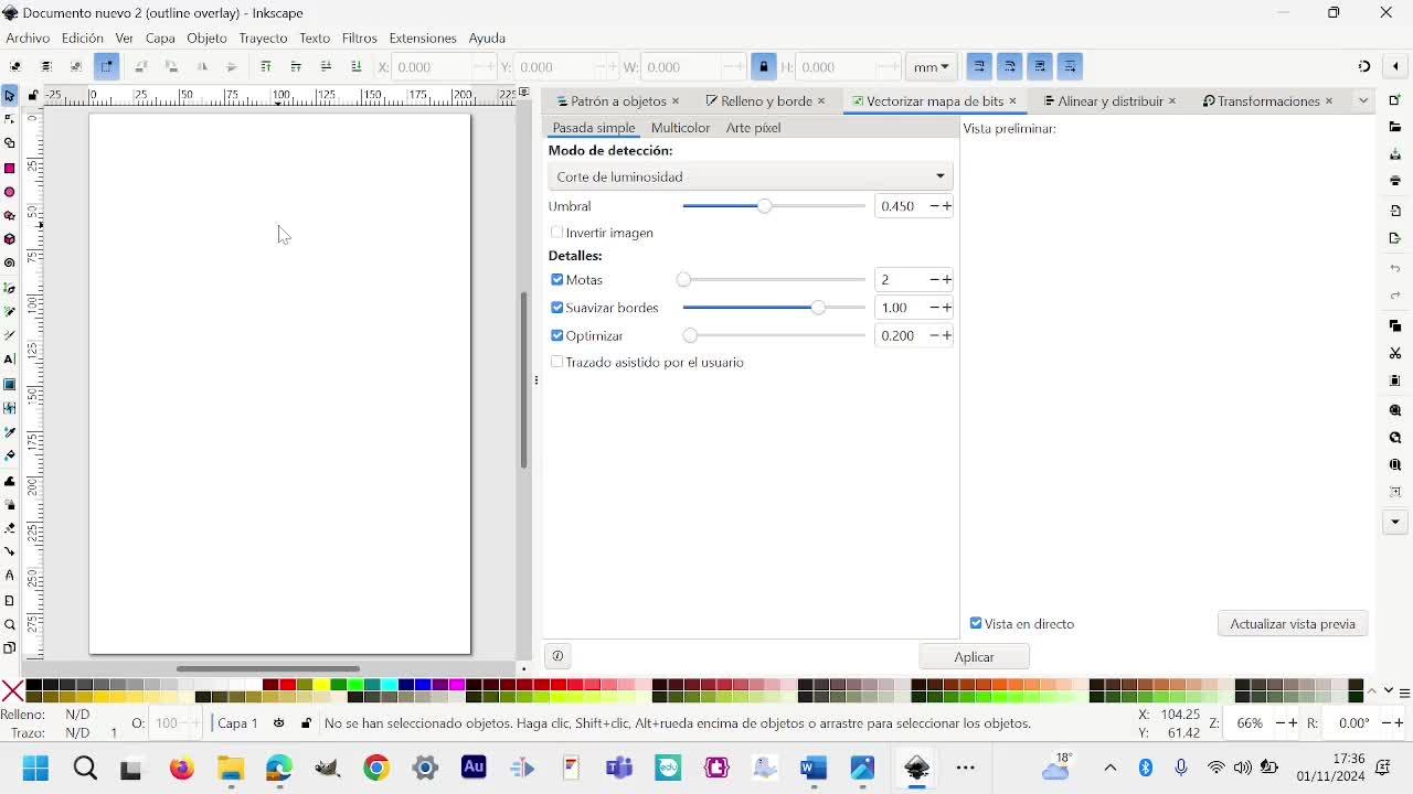 Entonces, lo que hacemos es trayecto, vectorizar mapa de bits, le damos a aplicar, le damos a aplicar