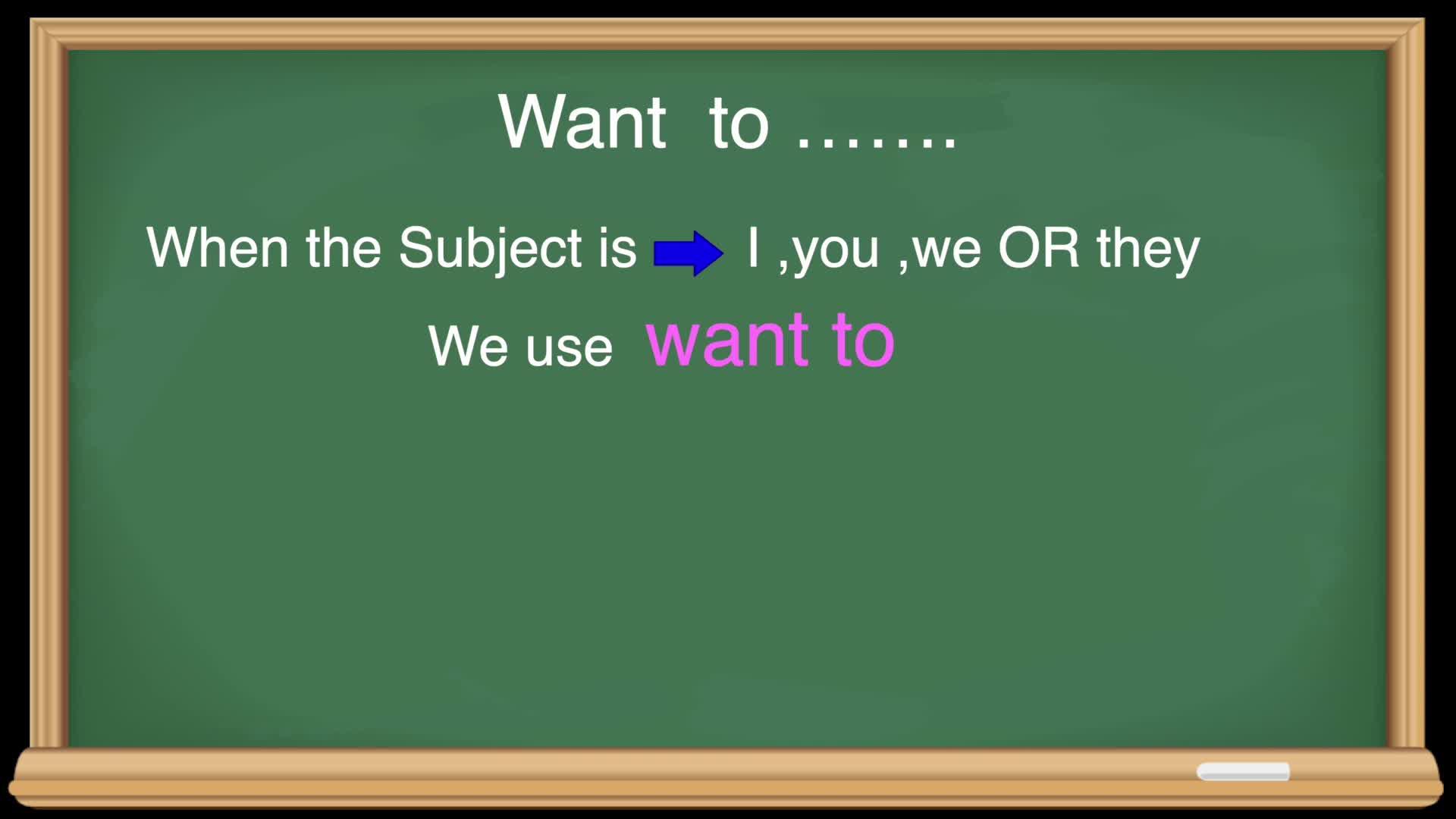 When the subject in a sentence is I, you, we or they, we use want to.