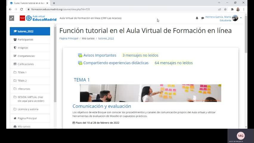 Bueno, una vez entrado a nuestra aula virtual en el curso que estemos cursando,