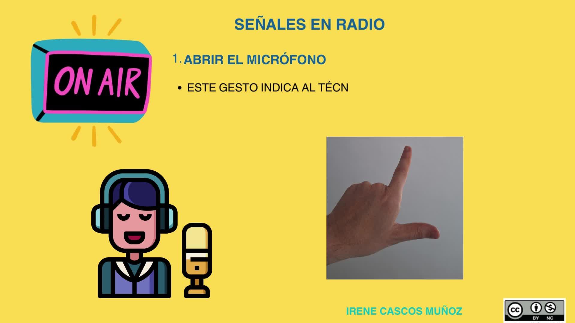 Usamos esta señal cuando queremos indicar al técnico que cierre el micrófono