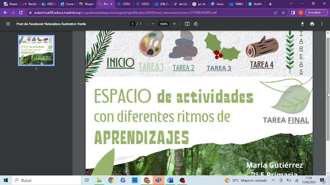Como veis, las cinco tareas, cada una con su enlace, más la tarea final, para que los niños aprendan con diferentes ritmos.