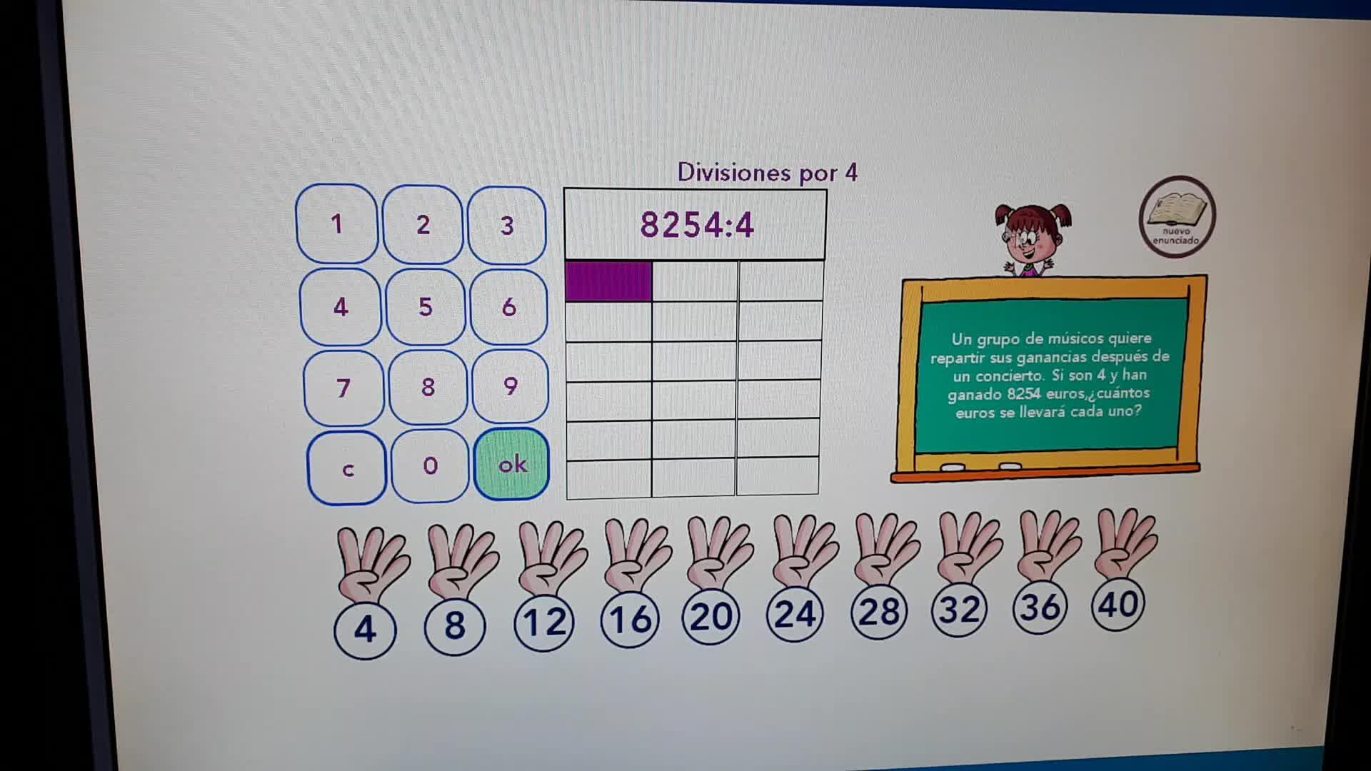 Ellos han pensado en 8000. ¿Qué número multiplicado por 4 me da 8000? Para eso tienen aquí la tabla.