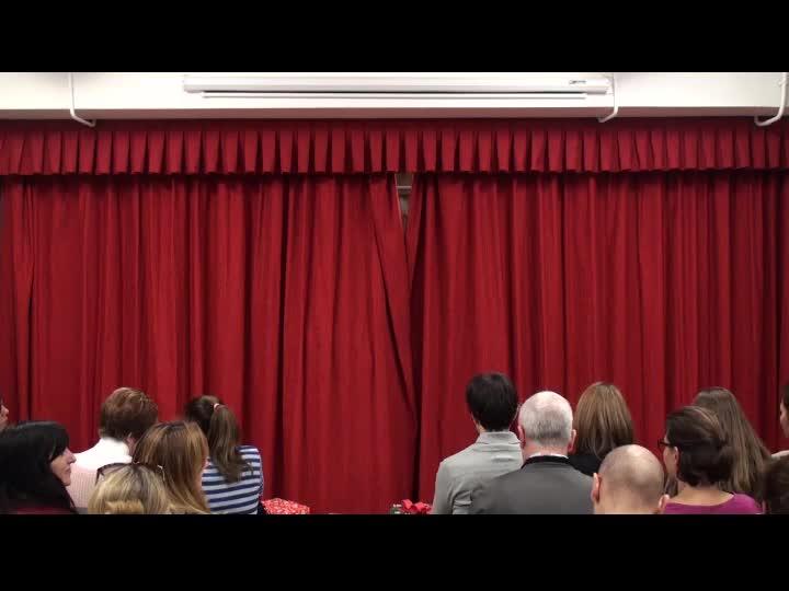 Ahora ya, sí. Para la siguiente canción hemos cerrado las cortinas porque vamos a repartir unos instrumentos, es una instrumentación.