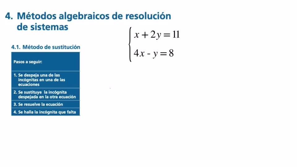 Sistemas de ecuaciones lineales. (Método de sustitución) - Contenido educativo