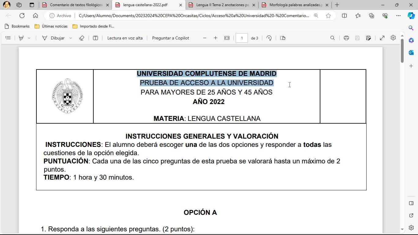 Examen Acceso a la universidad UCM Lengua 2022 Opción B - Contenido educativo