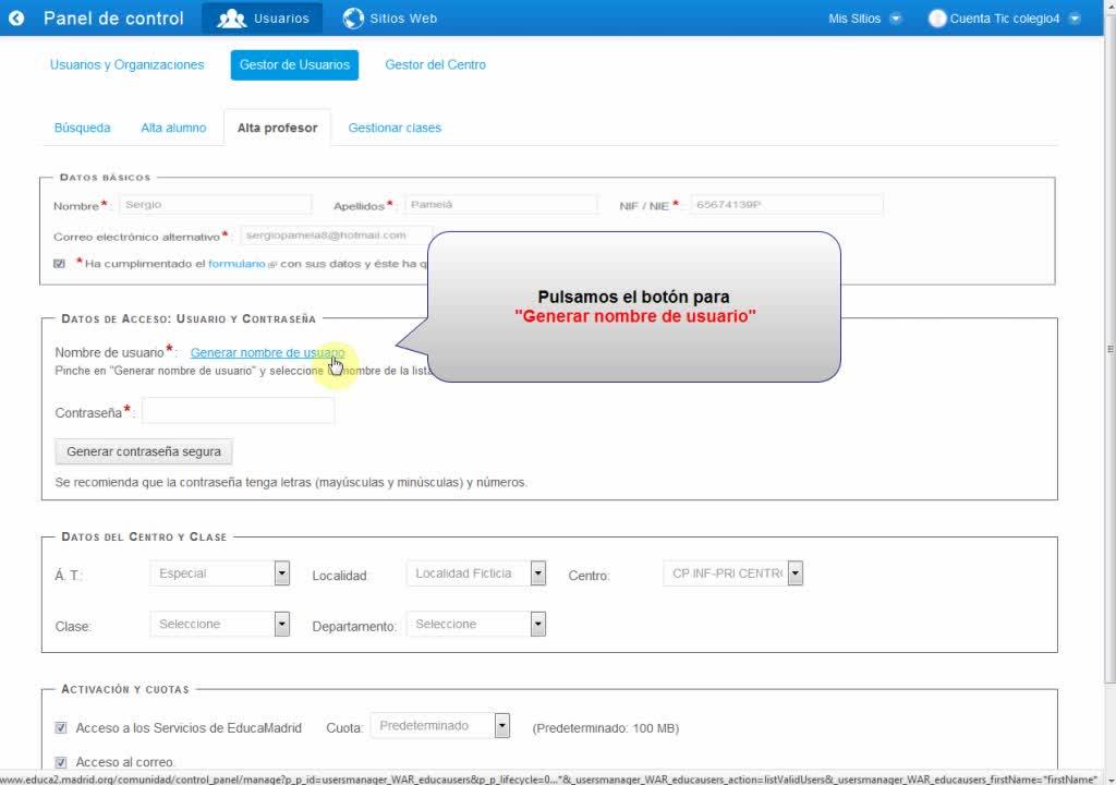 En este vídeo podemos ver cómo dar de alta a un profesor nuevo en la plataforma de EducaMadrid utilizando el gestor de usuarios, también podemos ver el formulario que deberá ser cumplimentado previo al alta del profesor.