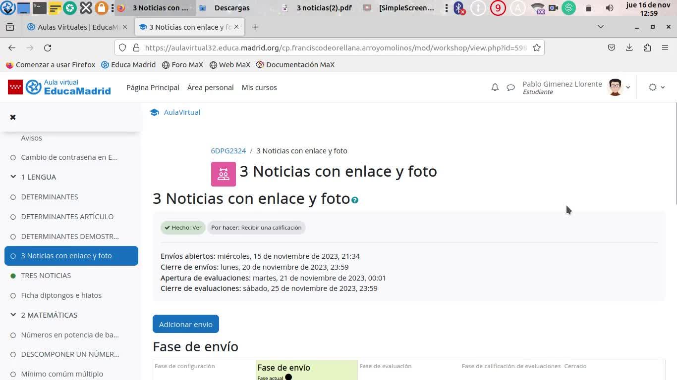 aparecerá que han enviado en la fecha del jueves 16 de noviembre el archivo. Pues esto