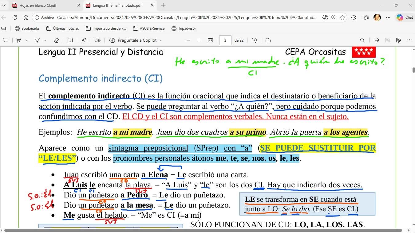 Lengua II Tema 4 Clase 48 bis 20260217 - Complemento Indirecto 2026 - Contenido educativo