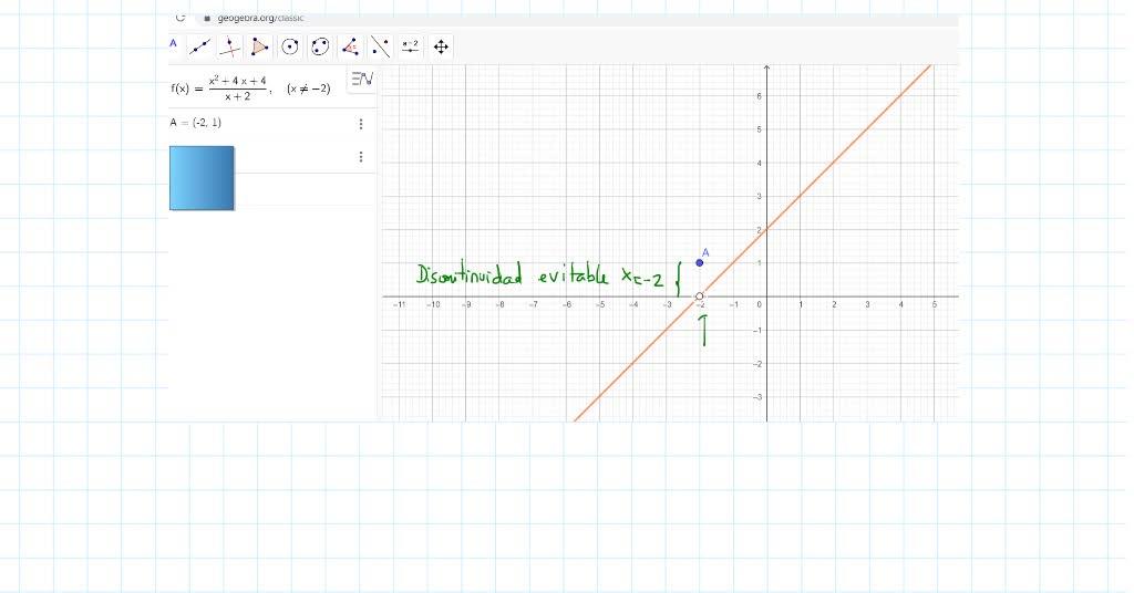 discontinuidad evitable. Bueno, esto con orgullo. Discontinuidad evitable en x igual a cero. ¿Por