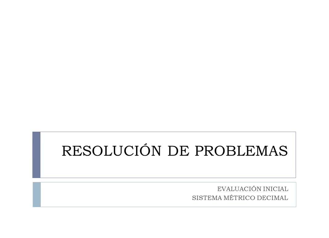 Problemas sistema métrico decimal. Evaluación Inicial