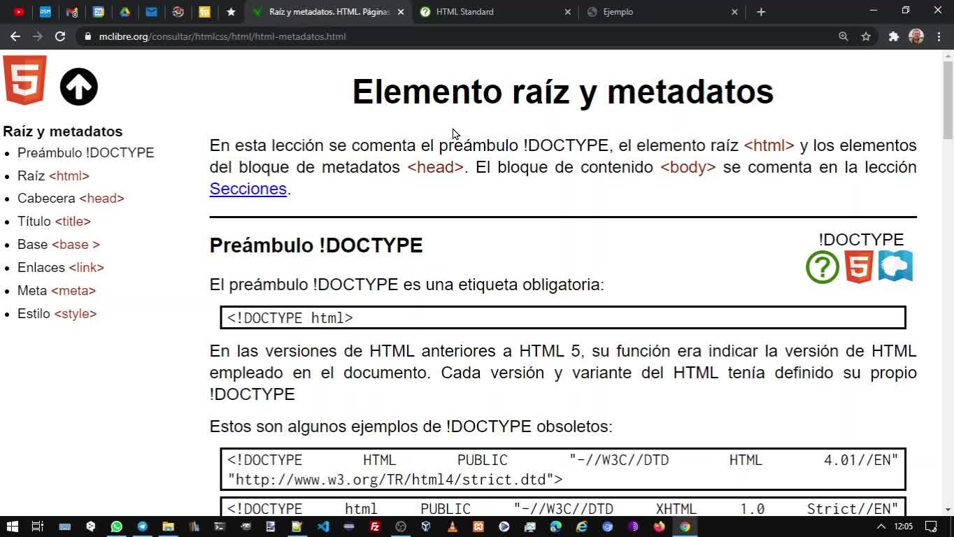 con el tipo de documento que vamos a trabajar docta y para html antiguamente había que poner