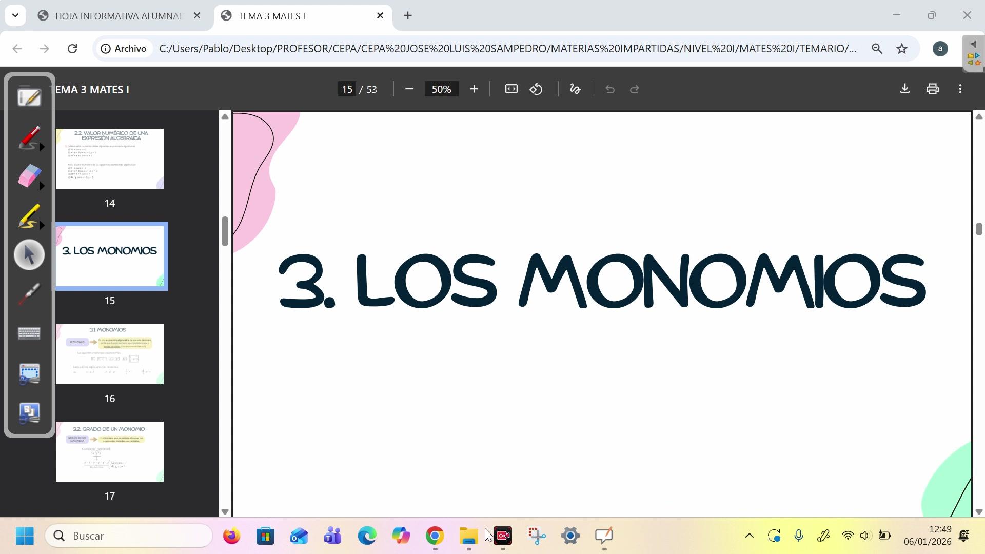 Recordáis que en la anterior clase estuvimos repasando un poquito las expresiones algebraicas, ¿no?